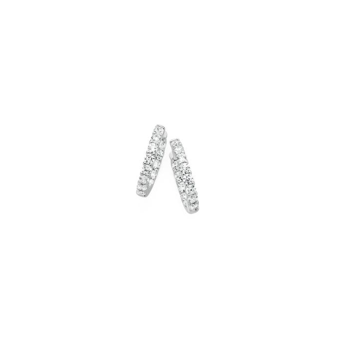 Sterling Silver Cubic Zirconia 2.5x18mm Inside Out Huggie Earrings