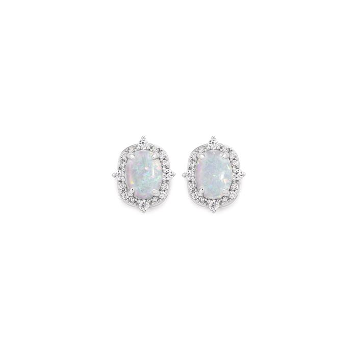 Sterling Silver Synthetic Opal & CZ Stud Earrings 1625089