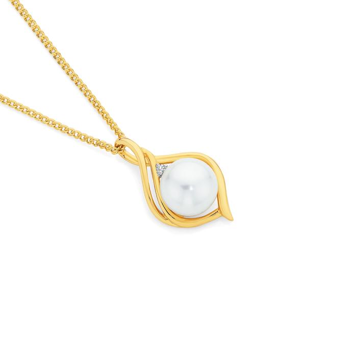 9ct Gold Cultured Freshwater Pearl & Diamond Pendant
