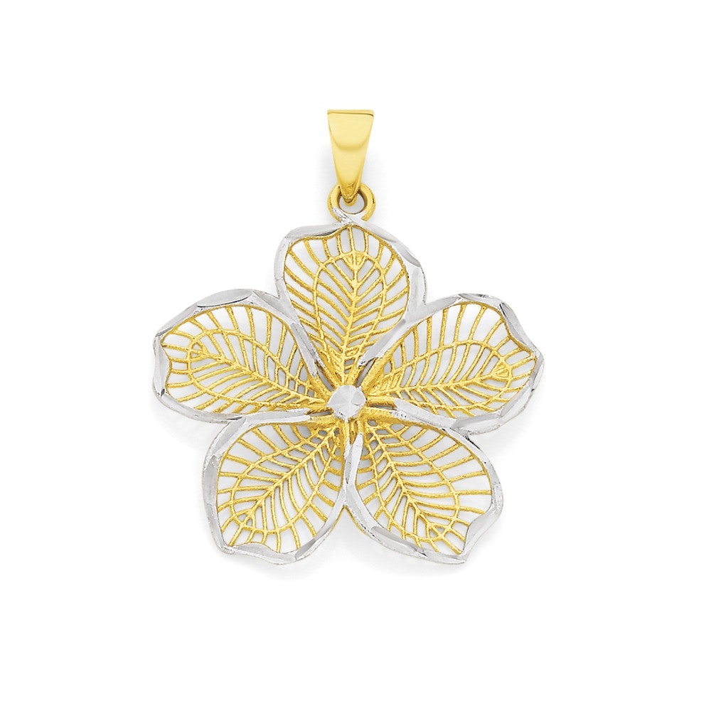 9ct Two Tone Diamond Cut Mesh Flower Pendant 2525670