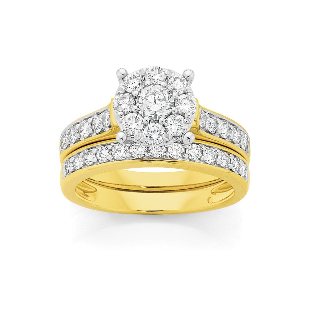 18ct Gold Diamond Round Brilliant Cut Cluster Bridal Set Total Diamond Weight = 1.50ct