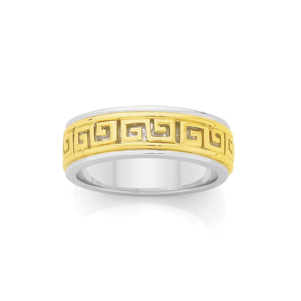 9ct Gold & Sterling Silver Greek Key Gents Ring - Available in Size U,W,Y