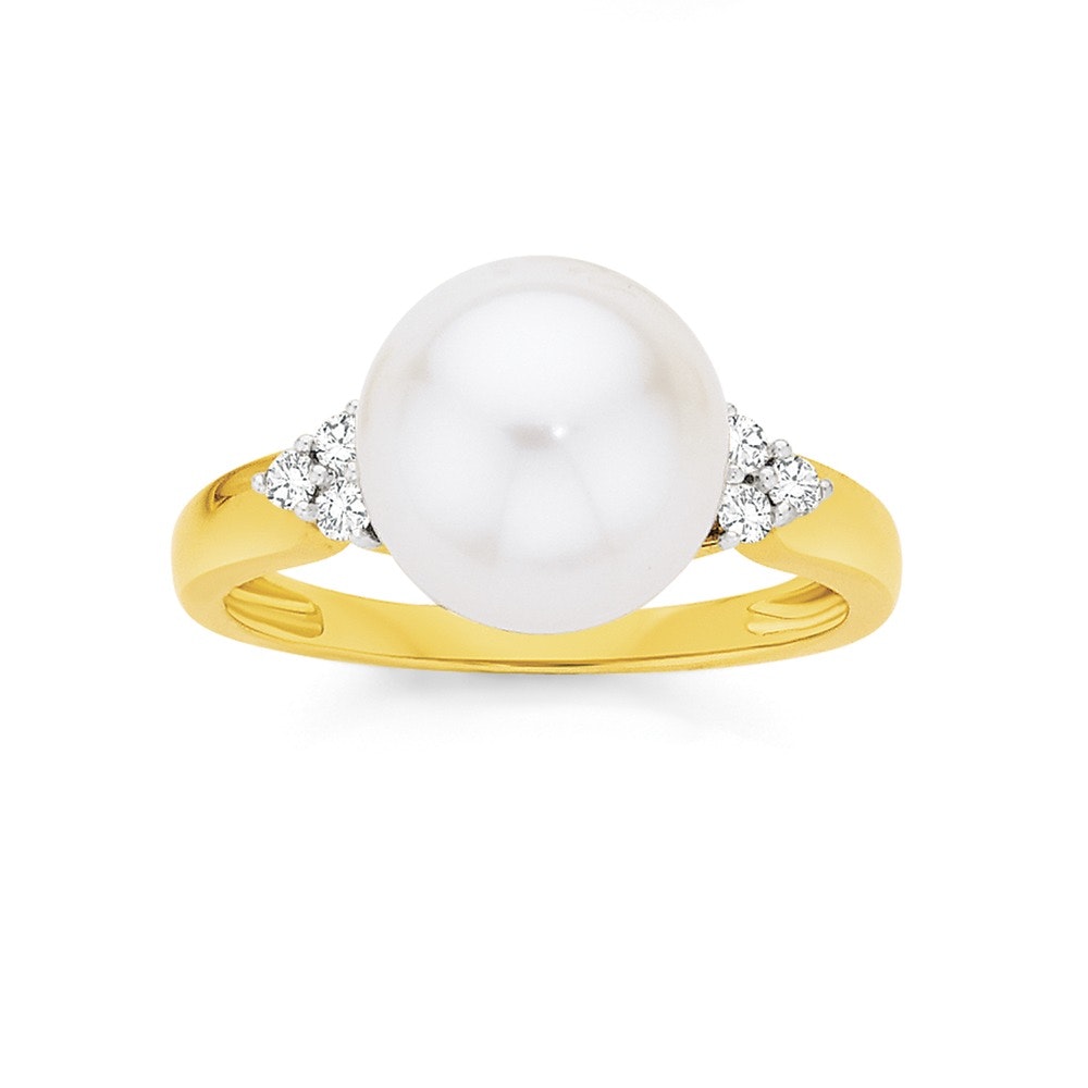 9ct Gold Cultured Freshwater Pearl & Diamond Ring