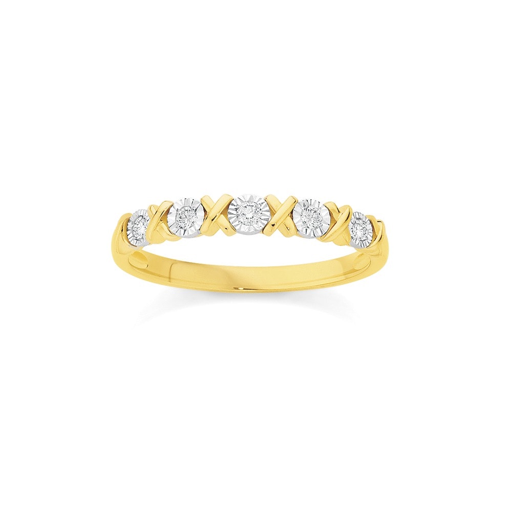 9ct Gold Diamond Hugs & Kisses Band Total Diamond Weight =.10ct8565511