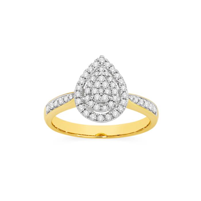 9ct Gold Diamond Pear Cluster Ring Total Diamond Weight = .35ct8645255