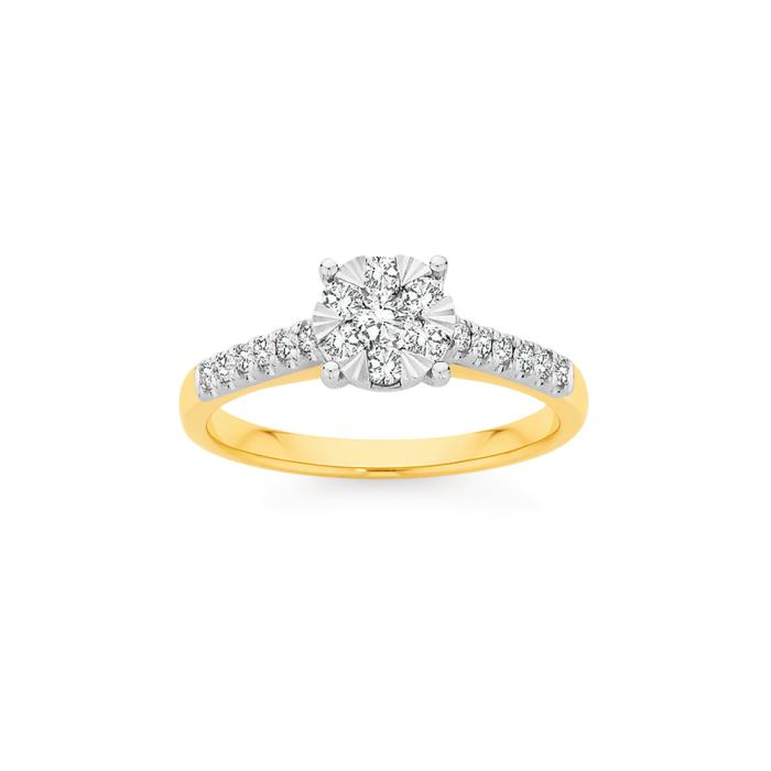 9ct Gold Diamond Round Brilliant Cut Cluster Shoulder Set Ring Total Diamond Weight =.50ct
