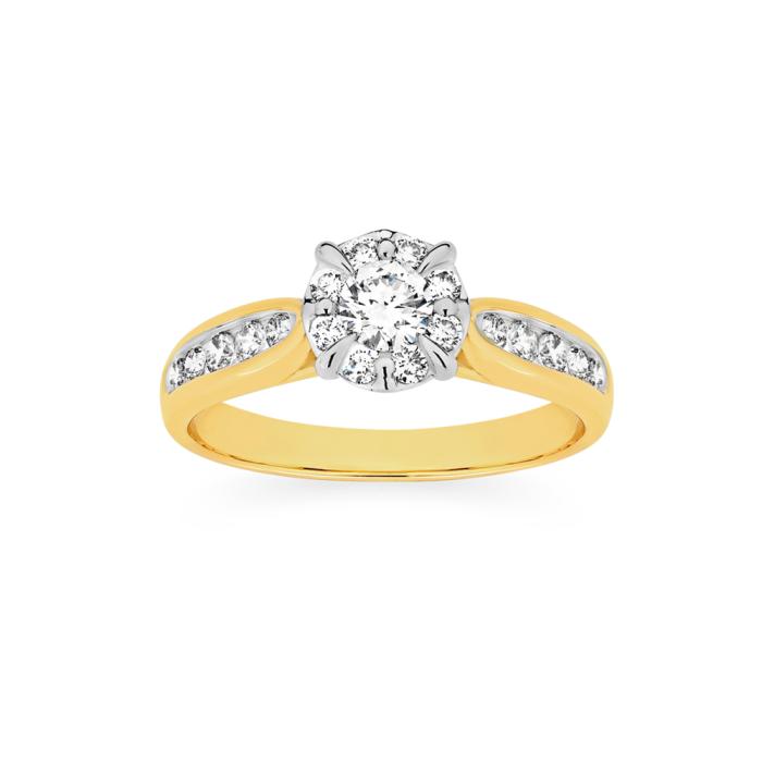 9ct Gold Diamond Round Brilliant Cut Cluster Shoulder Set Ring Total Diamond Weight =.75ct