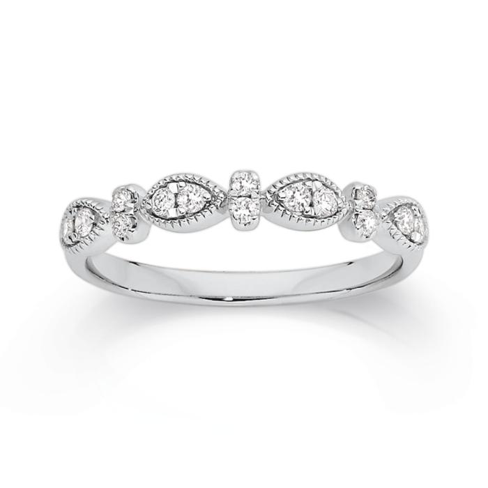 9ct White Gold Diamond Round Brilliant Cut Oval & Marquise Shape Alternating Band Total Diamond Weight=.20ct