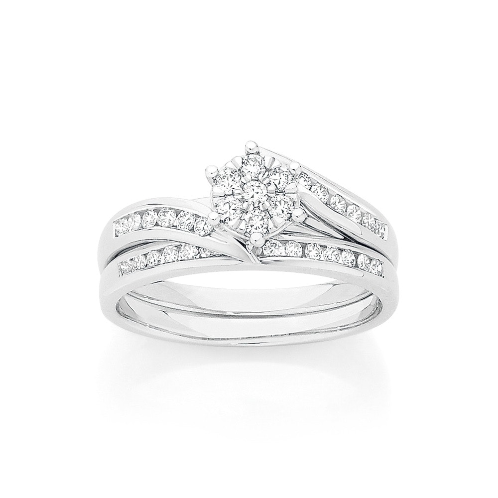 9ct White Gold Diamond Cluster Bridal Set