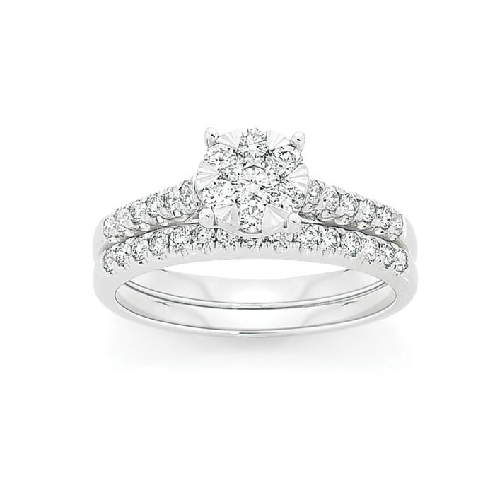 9ct White Gold Diamond Cluster Bridal Set