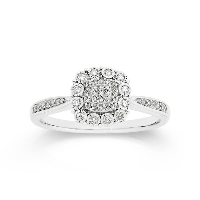 9ct White Gold Diamond Miracle Set Cushion Shape Cluster Ring Total Diamond Weight = .18ct