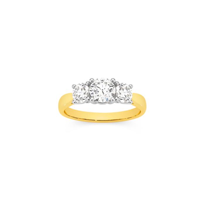 Alora 14ct Gold Lab Grown Diamond Round Brilliant Cut Trilogy Ring Total Weight = 1.50ct