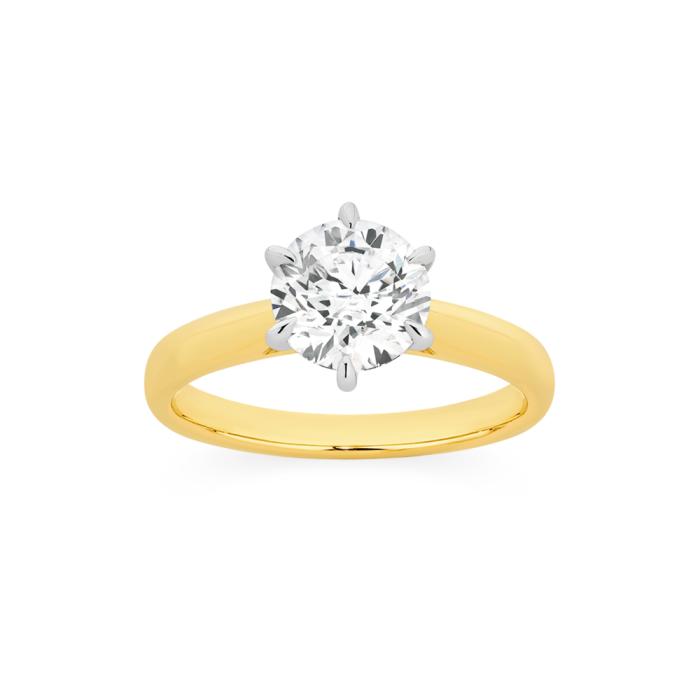 Alora by Angus & Coote 14ct Gold Lab Grown Diamond Round Brilliant Cut Certified 2 Carat Solitaire Ring