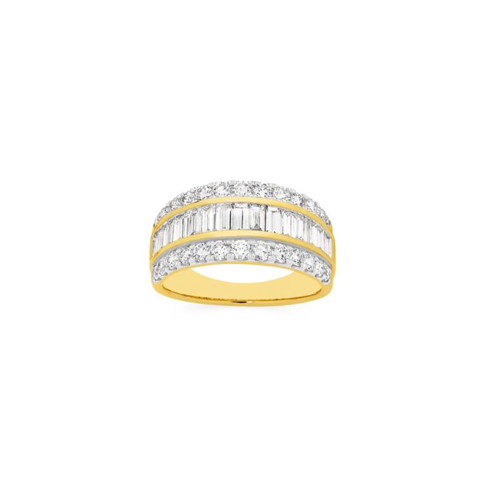 Alora 9ct Gold Lab Grown Diamond Round Brilliant Cut/Baguette Cut Three Row Dress Band Total Weight = 2.00ct