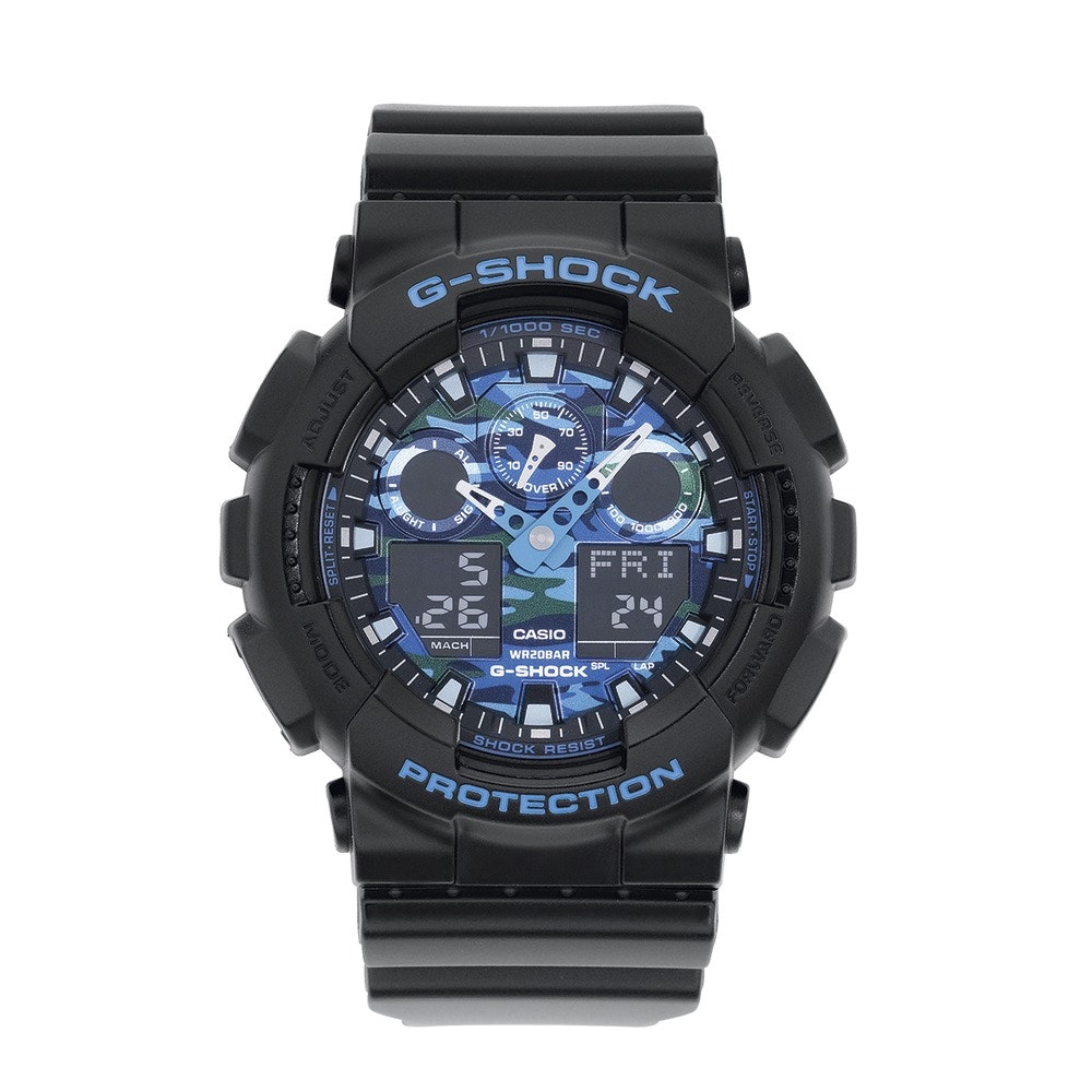 From G-SHOCK, the watch brand that is constantly setting new standards for timekeeping toughness,? comes the GA100 analogue model. With a 35mm diameter face and large case, as well as shock resistance, water resistance and? anti -magnetism, this timepiece embodies power and strength.