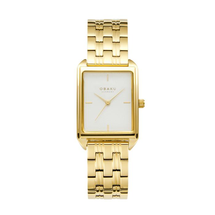 Celebrate timeless sophistication with the gold-plated version of the KAMILLE series. Adorned with a slender 23.5mm case and bracelet, plated in radiant gold, this ladies' timepiece exudes opulence and refinement. Complemented by a pristine white dial, its classic rectangular case design sets the stage for the subtle CD pattern, infusing depth and character into this elegant watch. A fusion of enduring quality and classic style, this gold-plated beauty epitomizes timeless grace and refined luxury.