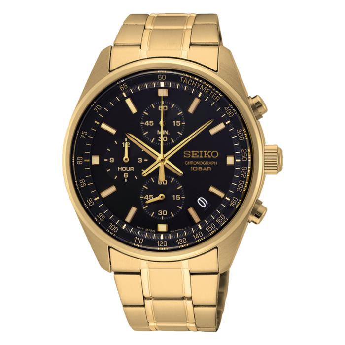Seiko men's, gold tone, Black dial, chronograph, 100m water resistant watch