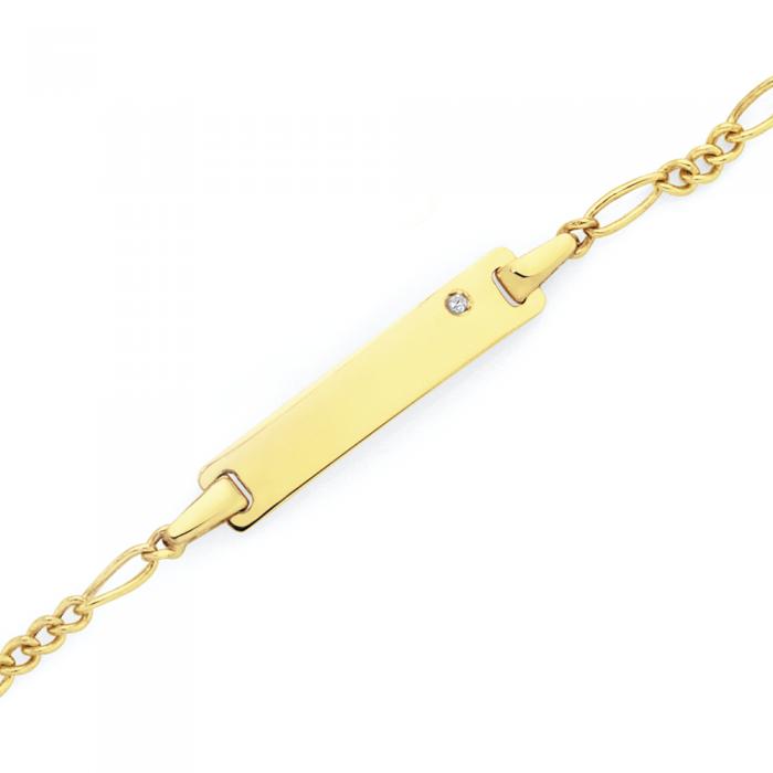 9ct Gold 14cm Figaro 3+1 Diamond Id Bracelet