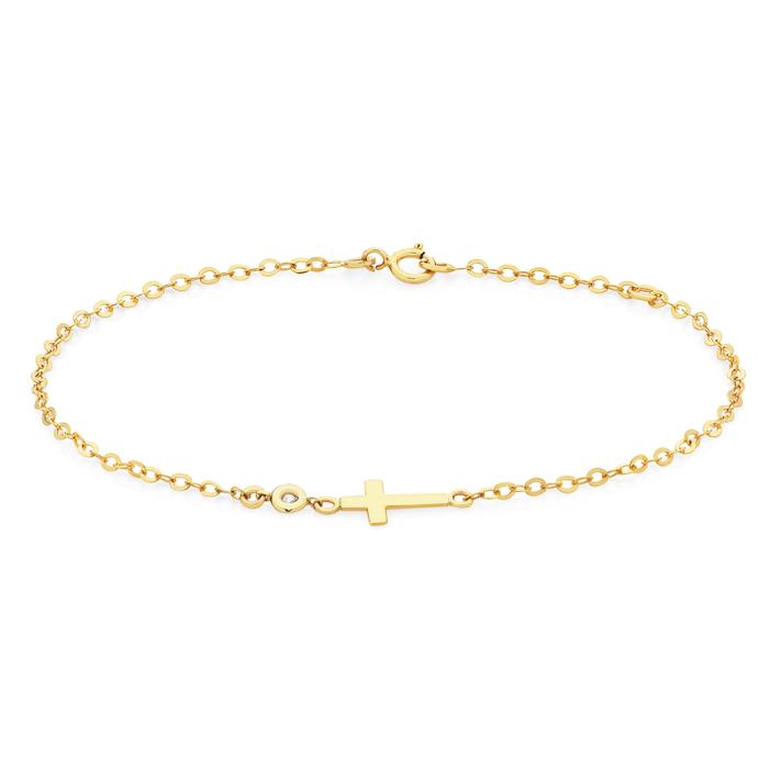 Italian Made 9ct 17cm Diamond-Set Cross Solid Trace Bracelet 2649355