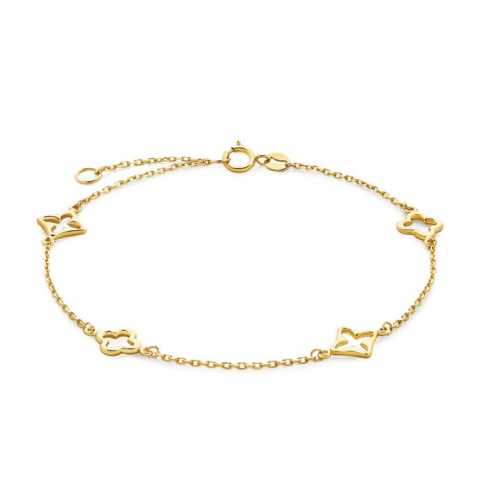 9ct Gold 19cm Multi Open Clover Alternating Trace Bracelet