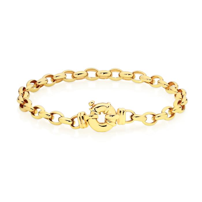9ct Gold 19cm Solid Oval Belcher Bracelet with Bolt Ring. Approximate Dimensions - 10mm Bolt Ring Diameter and 5mm Width of Links.