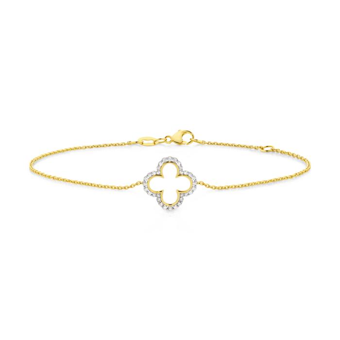 9ct Gold Diamond Clover Bracelet Total Diamond Weight = .12ct. Length = Approx. 19cm.