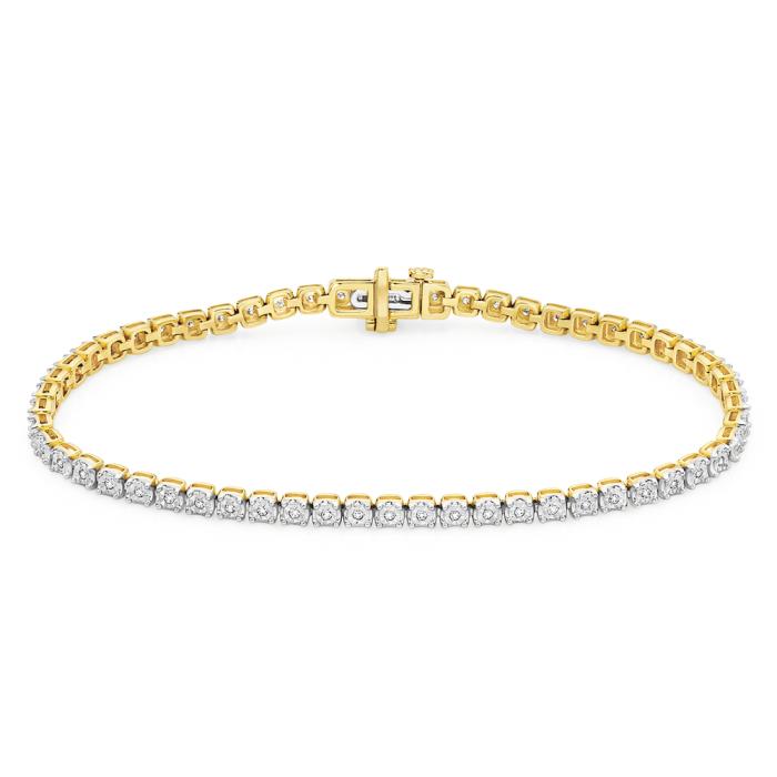 9ct Gold Diamond Miracle Set Tennis Bracelet Total Diamond Weight = .25ct. Approximately 18.5cm in Length.