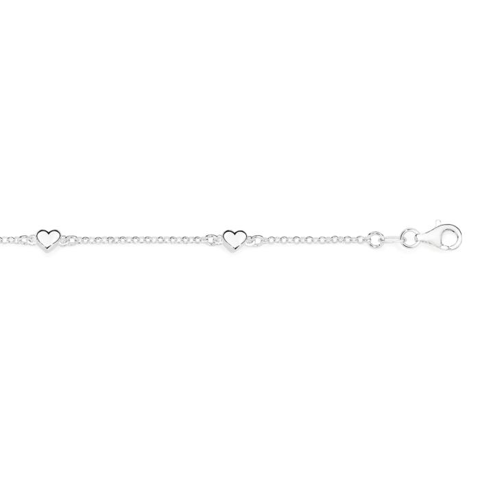 Sterling Silver 17+3cm Puff-Heart Cable Bracelet - Made In Italy