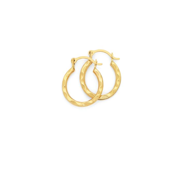 9ct Gold 10mm Hammered Texture Creole Earrings