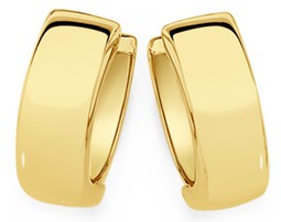 European Made 9ct Gold Polished Finish Huggie Earrings - Approximate Dimensions 4mm Width x 10mm Inner Diameter