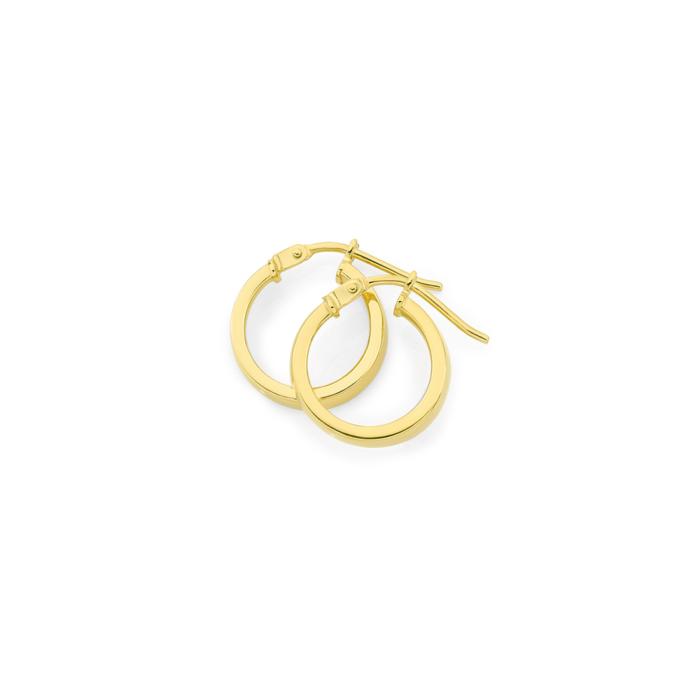 9ct Gold 10mm Rectangular Tube Hoop Earrings