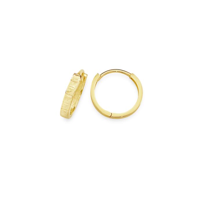 9ct Gold 11mm Diamond-Cut Sparkle Huggie Earrings. Approximate dimensions - 11mm Outer Diameter & 9mm Inner Diameter.