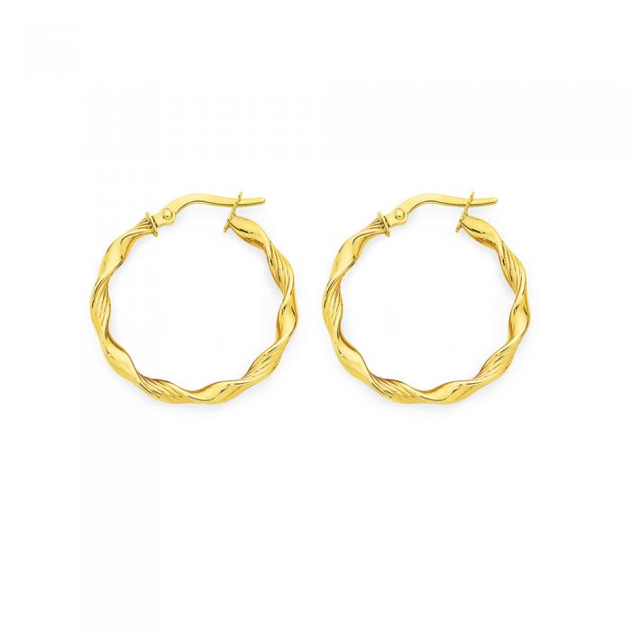 Italian Made 9ct Gold Plain and Patterned Ribbon Twist Hoop Earrings - Approximate Dimensions 15mm Inner Diameter