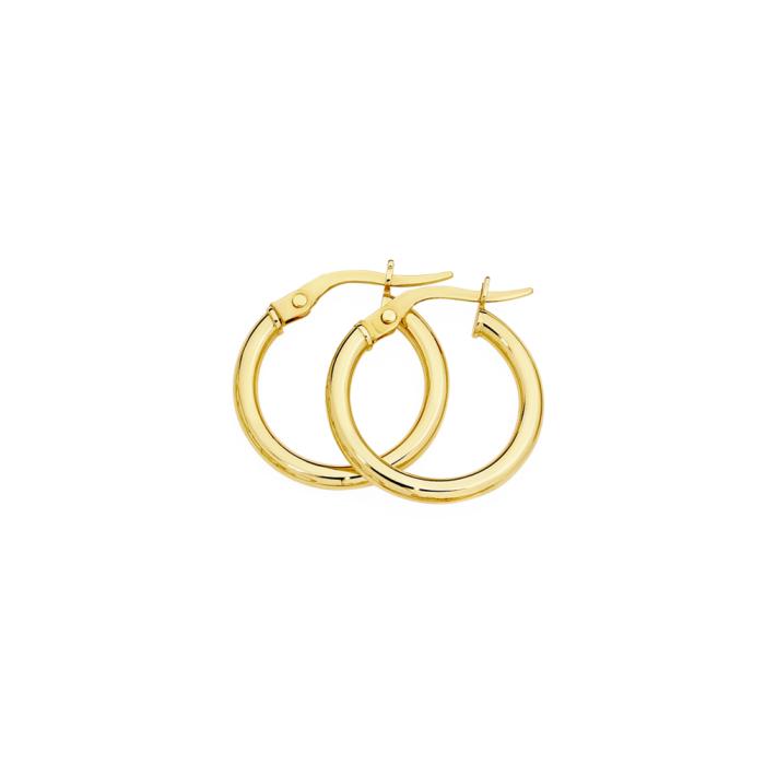Italian Made 9ct Gold Polished Finish Hoop Earrings - Approximate Dimensions 2mm Width x 12mm Inner Diameter (16mm Outer Diameter).