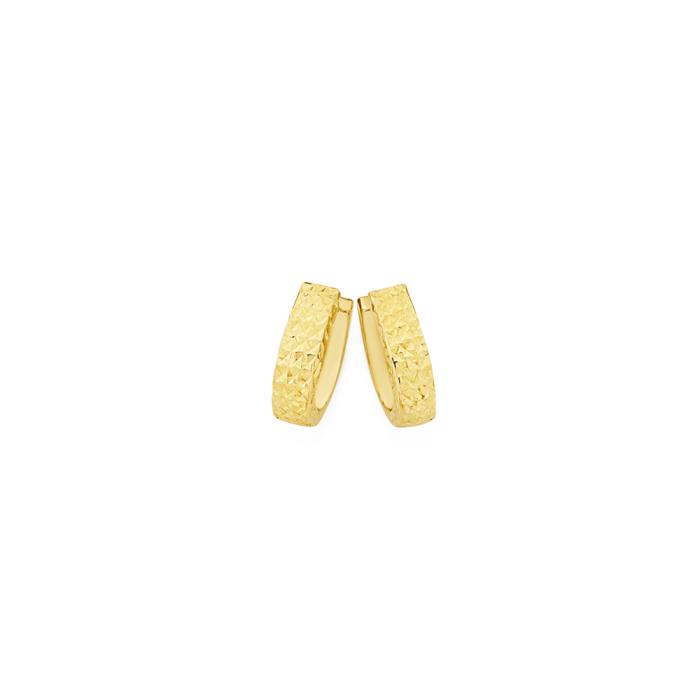 9ct Gold 8mm Diamond Cut Oval Huggie Earrings