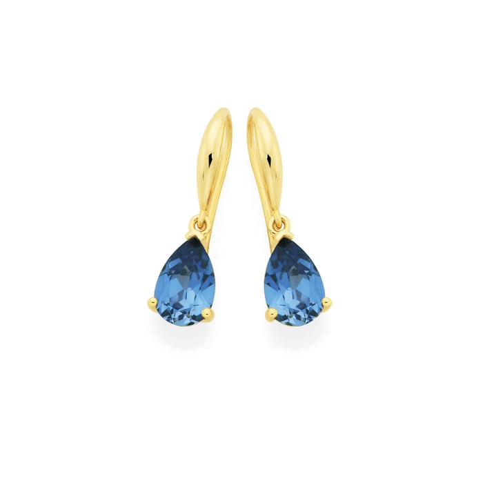 9ct Gold Created Celyon Sapphire Pear Drop Hook Earrings