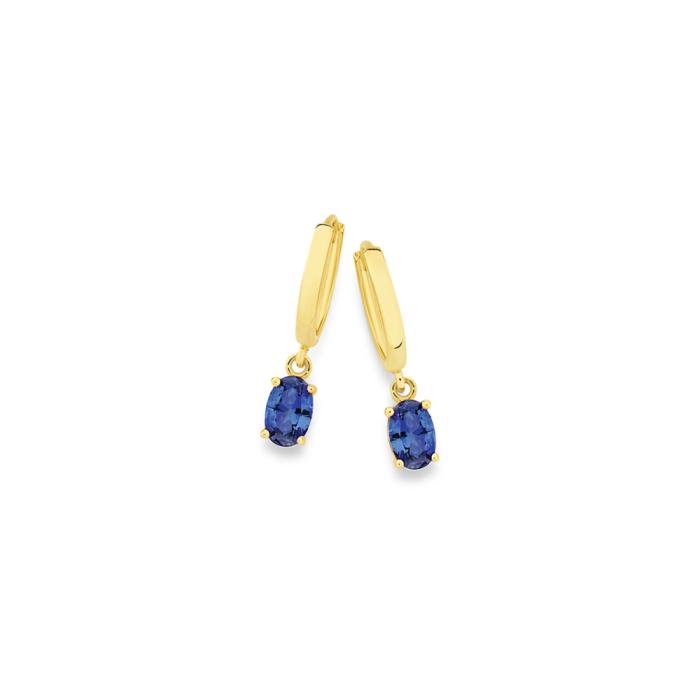 9ct Gold Created Ceylon Sapphire Drop Huggie Earrings