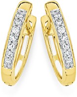9ct Gold Diamond Bar Set Huggie Earrings. External Size = Approx. 10mm x 2mm.