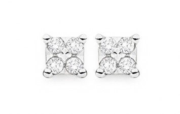 9ct Gold Diamond Square Stud Earrings