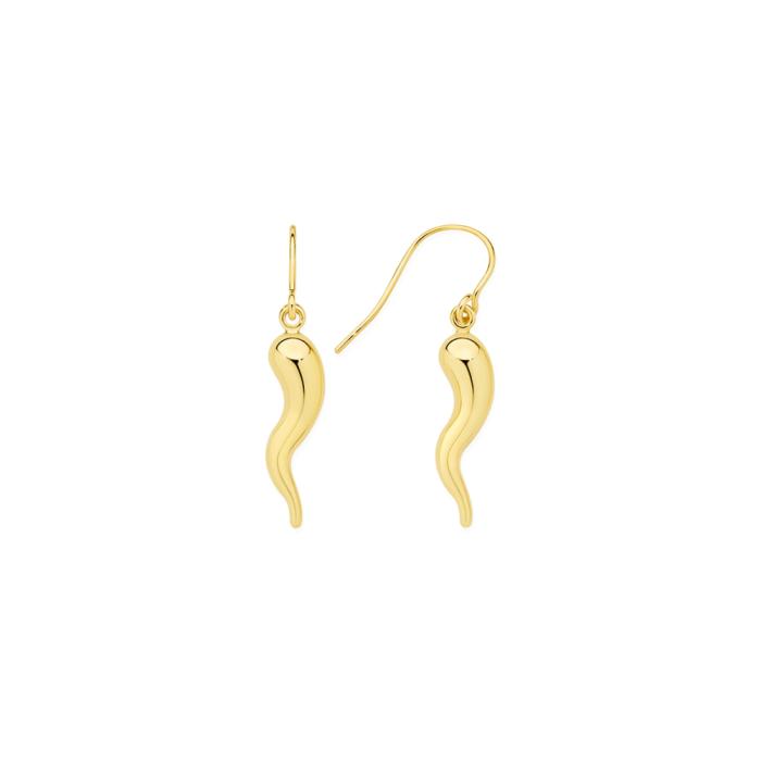 European Made 9ct Gold Horn of Plenty Hook Drop Earrings. Approximate Dimensions - Drop 27mm. Horn=4x16mm.
