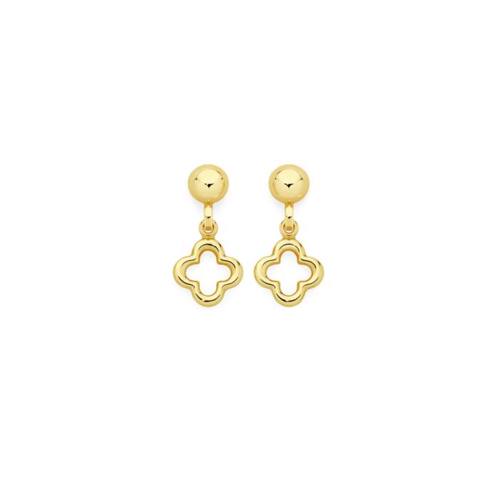 European Made 9ct Gold Open Clover Stud Earrings. Approximate Dimensions - Drop=12mm, Clover=7x7mm.