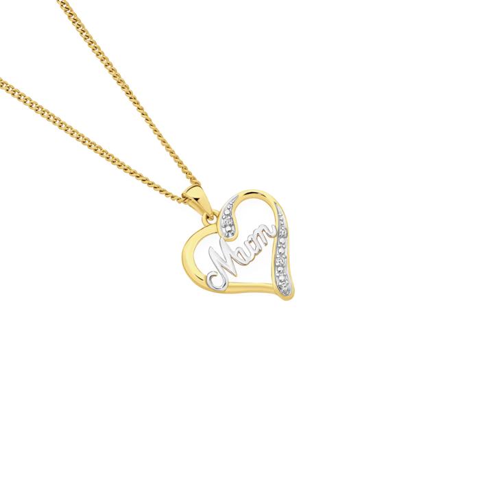 9ct Gold Diamond Mum Heart Pendant. Size = Approx. 20mm x 16mm Including Bale.