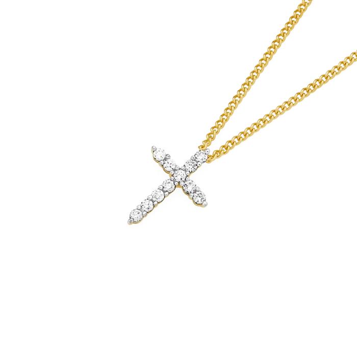 Alora 10ct Gold 1/4 Carat TW Lab Grown Diamond Cross Pendant