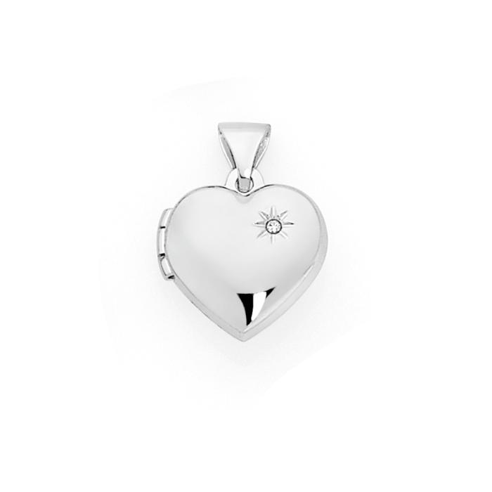 Sterling Silver Puff Heart with Diamond Starburst Kid's Locket. Approximate Dimensions - 12mm Width x 18mm Height including bale.