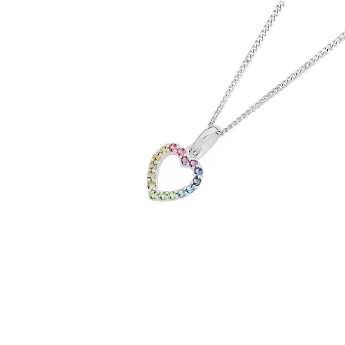 Sterling Silver Rainbow Crystal Open Heart Kid's Pendant. Approximate Dimensions - 9mm Width x 15mm Height including bale.