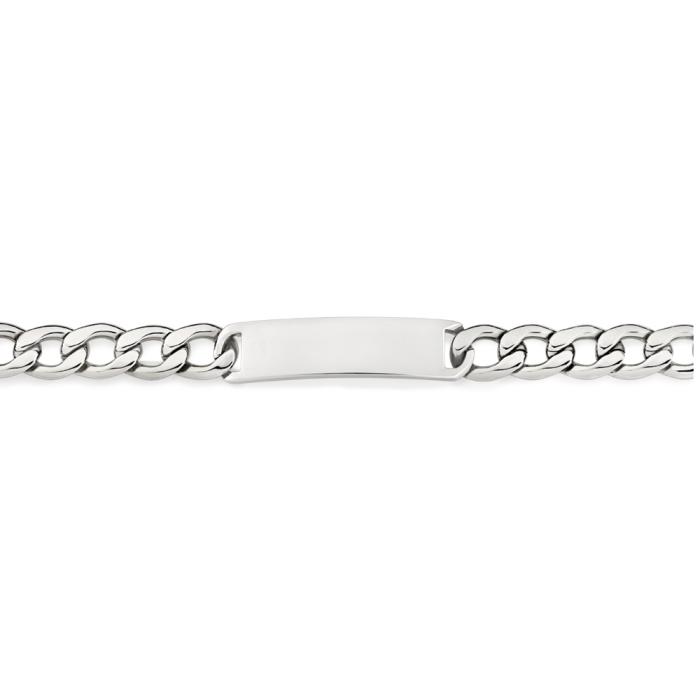 Stainless Steel 21.5cm Open Oval Curb Bracelet with Engravable Rectangular Identity Plate - 8.5mm Approximate Width.