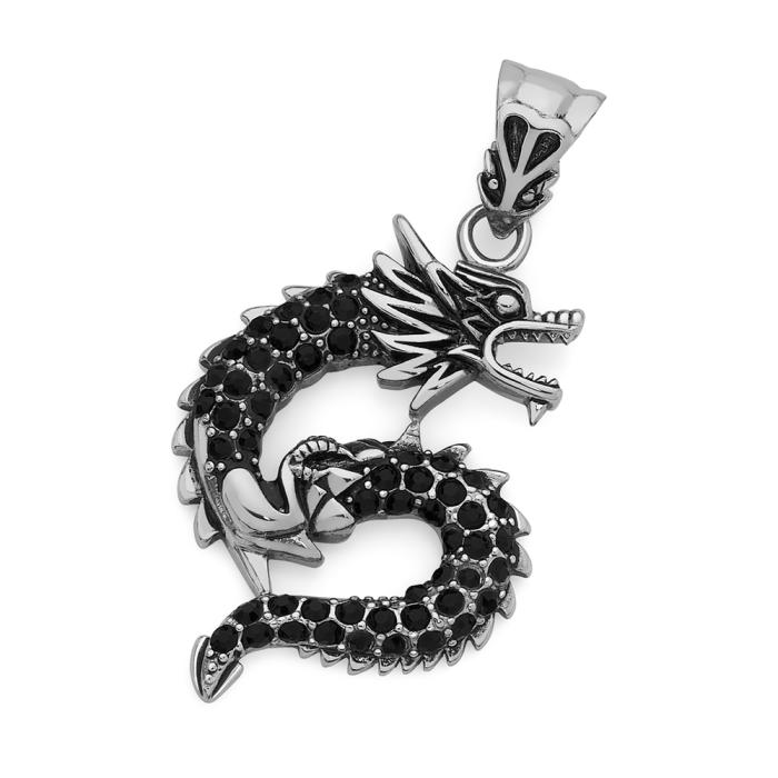 Stainless Steel Black Crystal Pave Dragon Gents Pendant