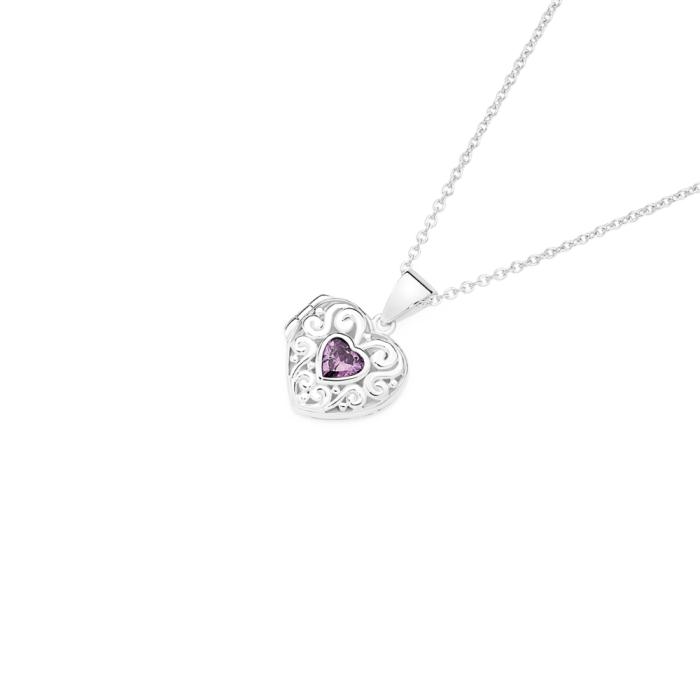 Sterling Silver Purple CZ Scroll Heart Locket1727215