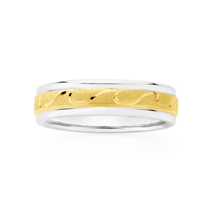 9ct Gold & Sterling Silver 6.5mm Satin Wave Centre Gents Ring. Available in Sizes U, W & Y.
