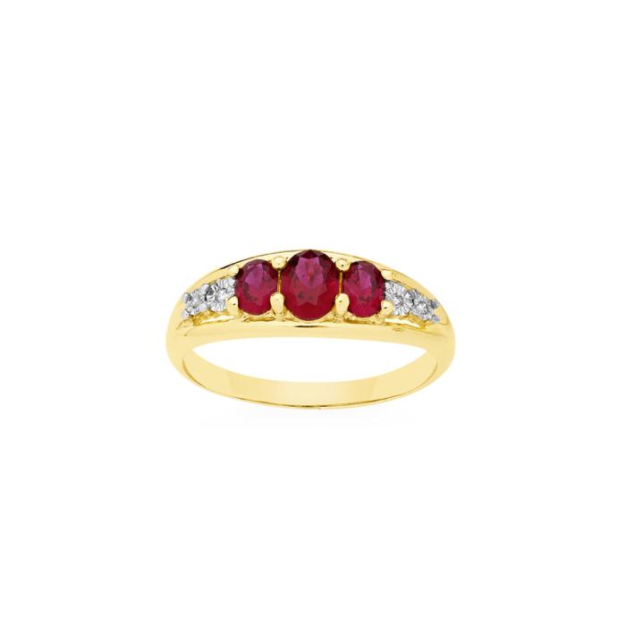 9ct Gold Created Ruby & Diamond Trilogy Ring